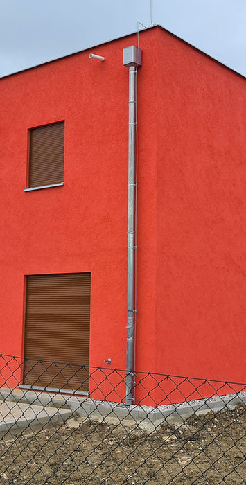 This detached family home was built as part of the RD Rýmařov residential development in Prague – Jahodnice, using prefabricated timber panel technology. The system combines factory-produced wall, ceiling, and roof panels with rapid on-site assembly, ensuring excellent precision, minimized construction errors, and a significantly shortened building time.